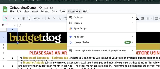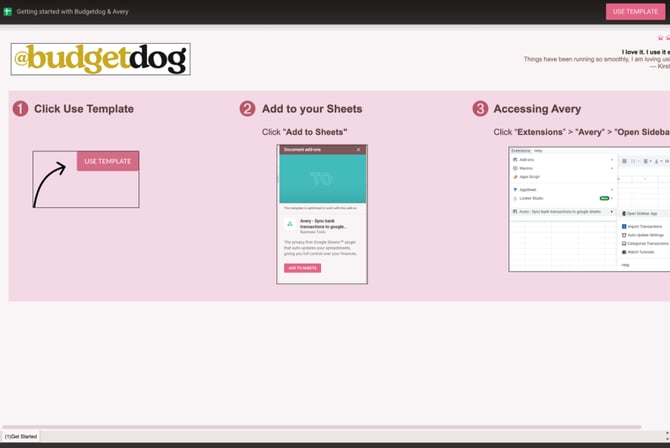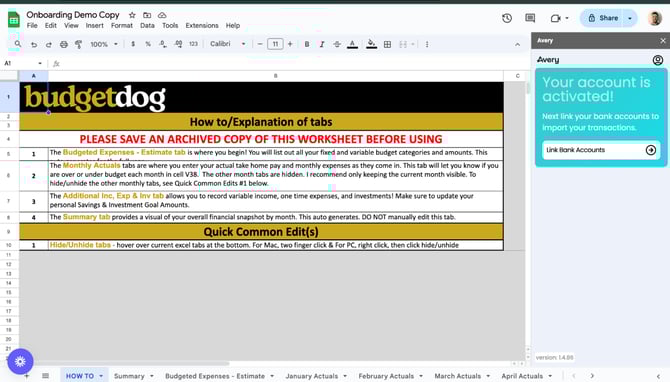 Here is a link to the Budgetdog template if you don't have it already. Note you'll need to have an active trial first so be sure to activate through the Budgetdog page.